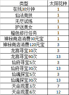 1.活动期间,玩家完成以下指定游戏内容可获得太阳花种,不同数量太阳花种可兑换不同级别的太阳花;