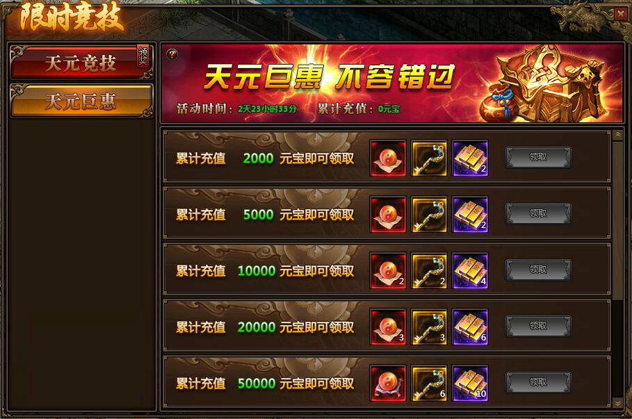 活动期间,满足累计充值额度,即可领取奖励