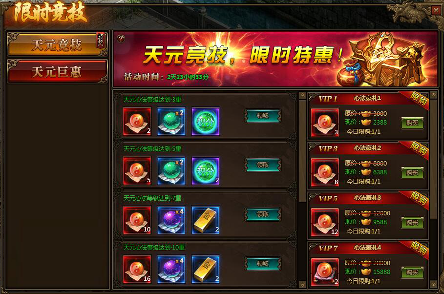 每日可购买多个特惠礼包,助您快速达成目标
