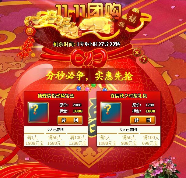①活动期间内每人可参与团购,参与时需扣除相应元宝作为押金。