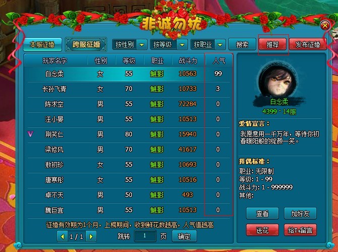 2.增加【推荐】功能,根据玩家的需求和实际情况推荐适合的人选