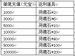 活动期间,所有玩家首次充值任意金额,即可获得价值988元宝的首充奖励:许愿瓶*2、光棍节双人烟花*2、灵幻石*2、图腾初级幻化丹*5、翅膀仙羽*3、仙宠成长丹*3、纤纤柔情*1。(奖励每人只能领取一次,未进行过首充的玩家还可额外获得【首充礼盒】哦)。