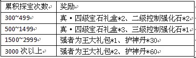 活动期间,每天累计寻宝次数达到150次且在寻宝达人榜排行前3名玩家可获得额外系统奖励。