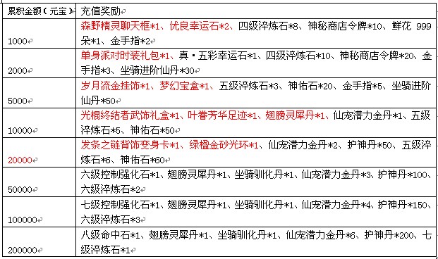 活动期间,累积充值达到指定额度,还可以获得以下超值丰厚的奖励哦!