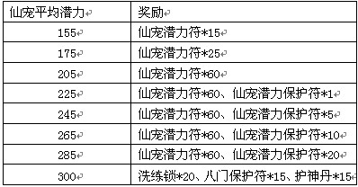 活动期间,将仙宠提升至指定成长可获得额外奖励。