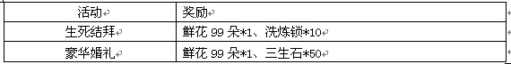 活动规则:活动期间,进行生死结拜和豪华婚礼,将获得超值奖励。