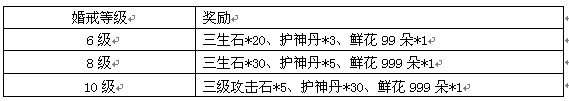 活动规则:在活动期间,将婚戒等级提升至指定级别,夫妻双方可获得以下额外的奖励哦。