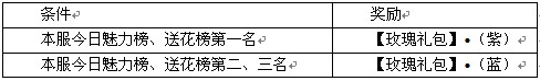 活动期间,玩家间在本服今日魅力榜、送花榜排名前三将会获得额外的排行奖励。