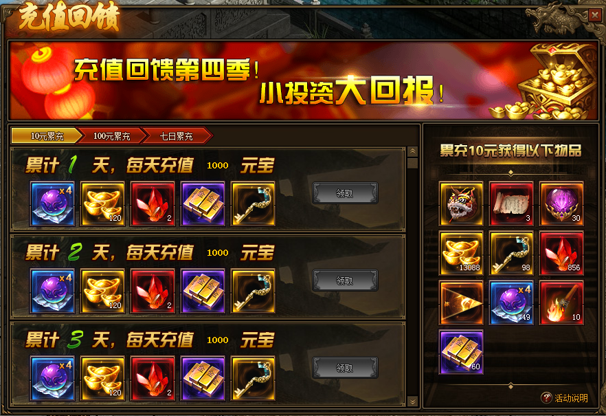 领取完对应档的充值奖励后,将自动开启第四季充值回馈