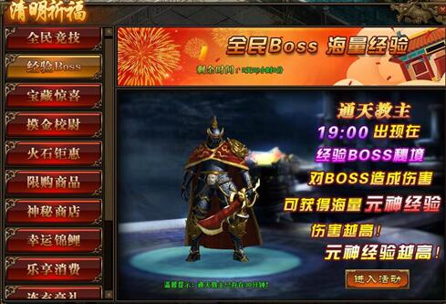 2.活动中,玩家对BOSS造成的伤害,将在活动结束后转换成元神经验并发放;