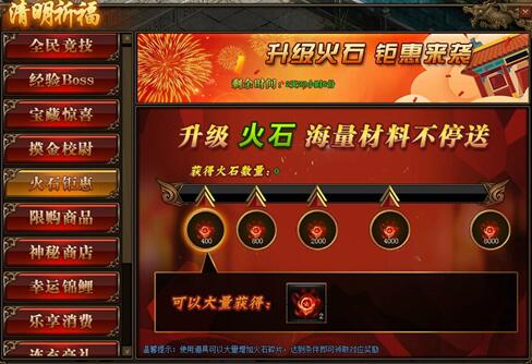 1. 活动期间,玩家获得火石碎片数量,达到条件可领取对应火石碎片奖励。