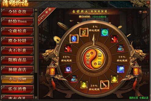 1.活动开启后奖池内默认存入88888元宝,每抽奖1次可使奖池内增加100元宝