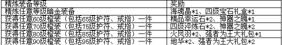 活动规则:活动期间,玩家通过橙装精炼获得任意一件橙装(包括橙色武器)或精炼成功任意暗金装备,即可获得系统奖励一份。
