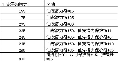 活动期间,将仙宠提升至指定成长可获得额外奖励。