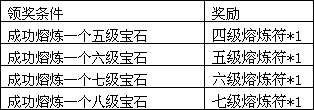 活动期间,玩家每熔炼成功一个指定级别宝石,即可获得系统赠送的好礼一份。