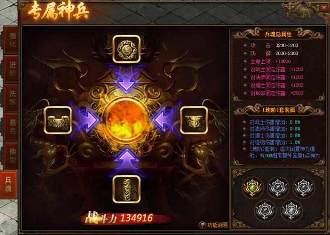 兵魂装备分为10个等阶,满足专属神兵lv等级即可穿戴