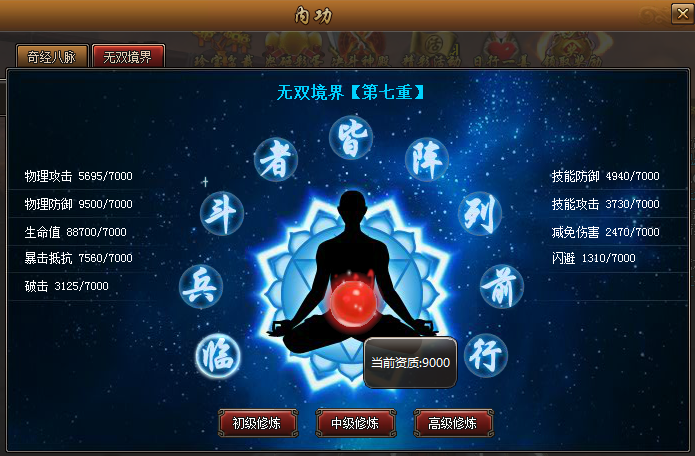 当玩家完成92级的主线后,可进行内功-无双境界的修行,每日玩家可通过人物属性界面的内功系统进行无双境界的修炼。