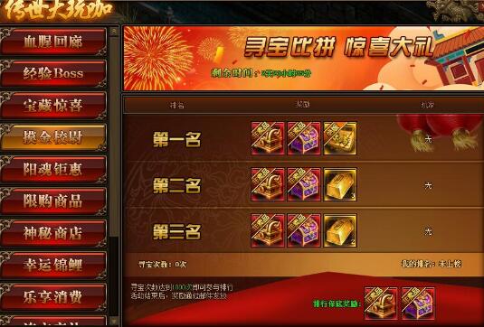 第三名:名列前茅自选宝箱,传世灵器自选宝箱*1,金条(300w)*2;