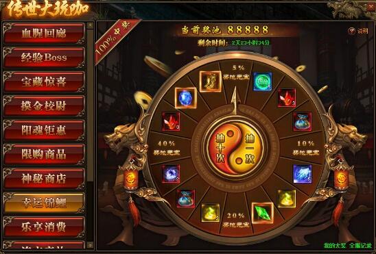 1.活动开启后奖池内默认存入88888元宝,每抽奖1次可使奖池内增加100元宝