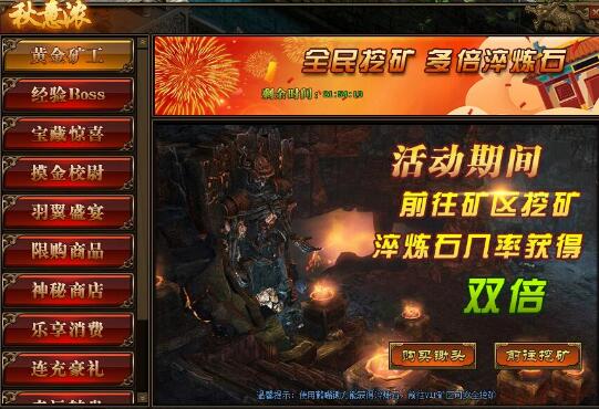 1.活动期间,玩家使用“鹤嘴锄”进行挖矿,获得“淬炼石”的概率翻倍;