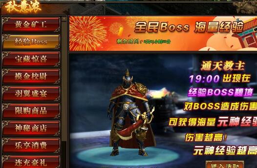2.活动中,玩家对BOSS造成的伤害,将在活动结束后转换成元神经验并发放;