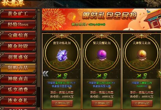 1.活动期间,玩家可在活动面板购买限购商品;(可翻页)