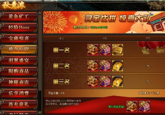 第三名:名列前茅自选宝箱,传世灵器随机宝箱*1,金条(300w)*2;