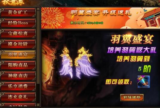 2.玩家每再提升一级的羽翼,将可再次免费领取羽毛;