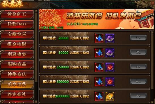 1.活动期间,玩家累计消费满足要求,可以领取境界修为、本职业星石、传世灵戒等相应奖励;
