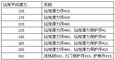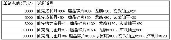 活动期间,将仙宠提升至指定成长可获得额外奖励。