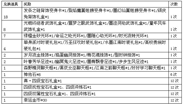 兑换道具规则:
