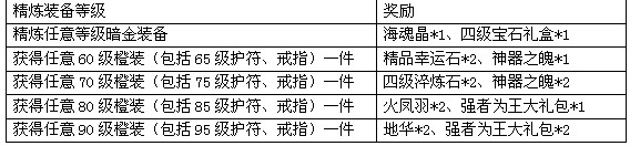 活动规则:活动期间,玩家通过橙装精炼获得任意一件橙装(包括橙色武器)或精炼成功任意暗金装备,即可获得系统奖励一份。