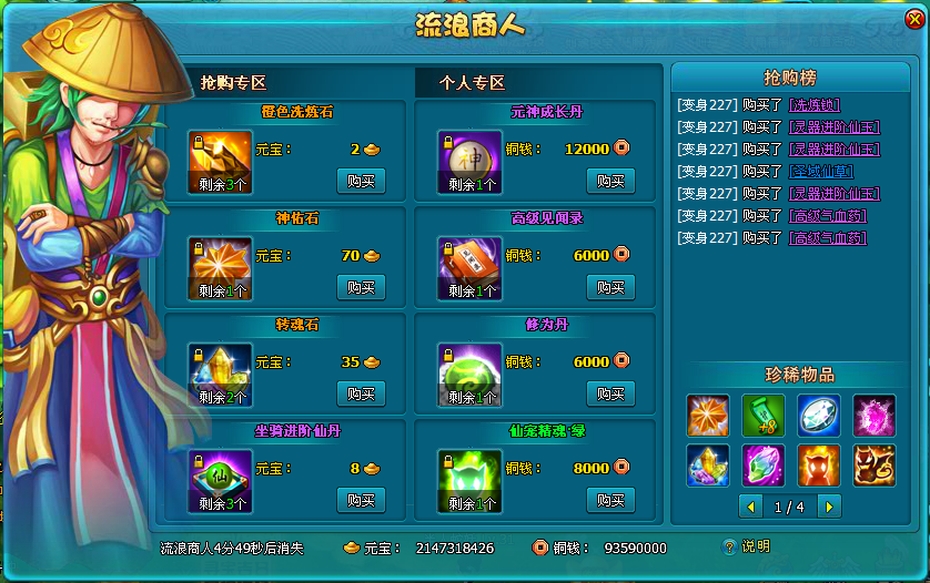 活动期间,流浪商人不定期刷新,前往抢购可低价购买超值商品。