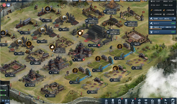 训练各类士兵,但是需要跟着官邸的等级升级,才可以解锁兵种等级,越高级的兵种基础属性越高。