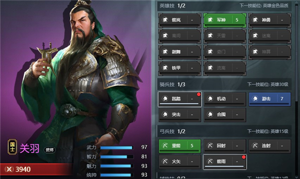 弓兵技:重箭、回射、连射、火矢、箭雨;