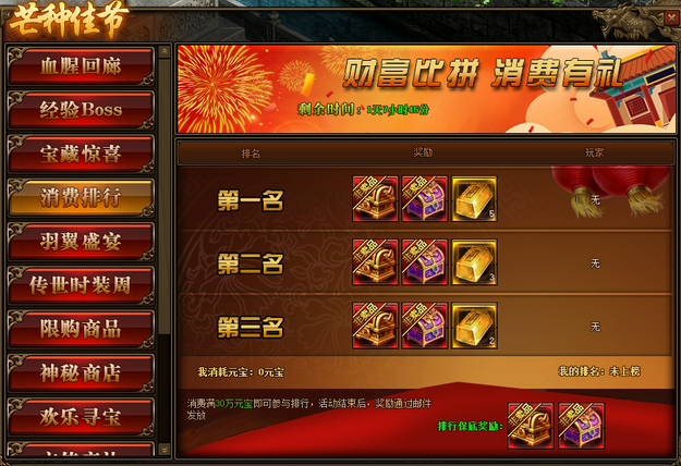 第三名:名列前茅自选宝箱,传世灵器随机宝箱*1,金条(300w)*2;