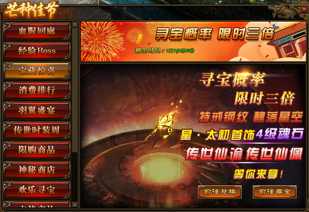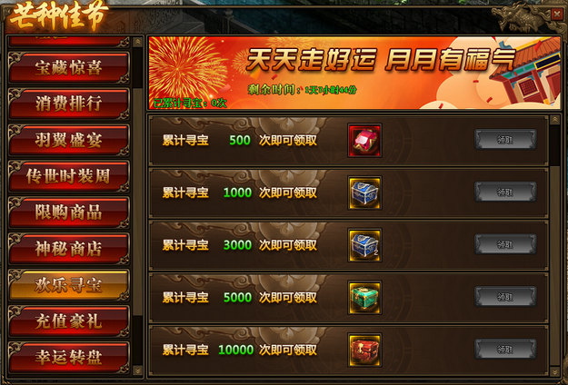 1.活动期间,玩家累计寻宝次数满足要求,可以领取高级天魂石等相应奖励;