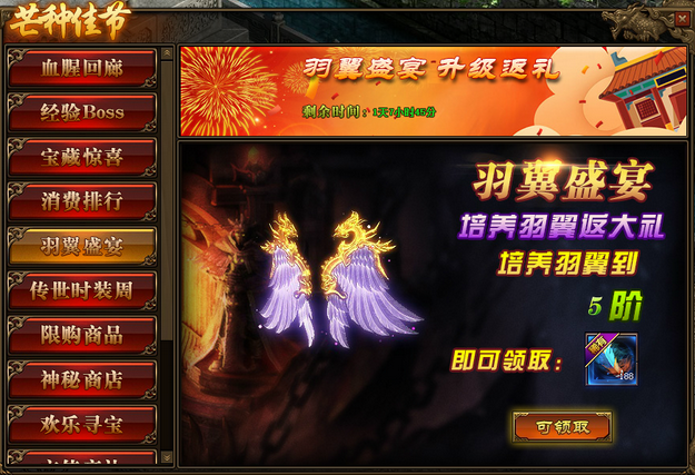 1.活动期间,玩家羽翼只需达到5级,即可领取一定数量的羽毛;