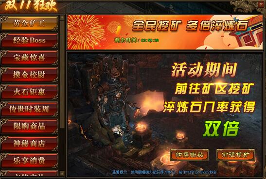 2.注意:必须使用“鹤嘴锄”才可获得“淬炼石”,在VIP矿区可安全挖矿;