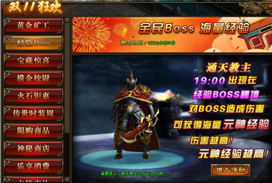 2.活动中,玩家对BOSS造成的伤害,将在活动结束后转换成元神经验并发放;