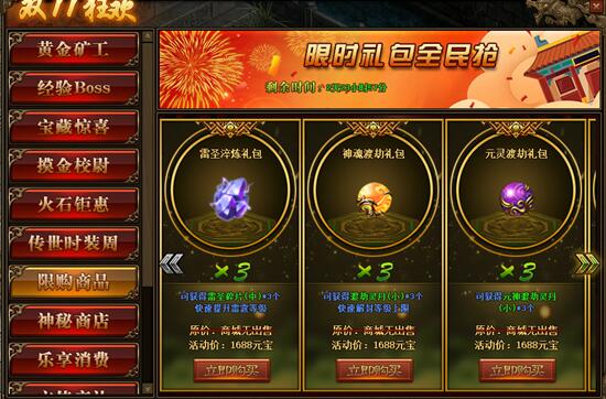 1.活动期间,玩家可在活动面板购买限购商品;(可翻页)