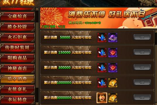 1.活动期间,玩家累计消费满足要求,可以领取境界修为、本职业星石、传世灵戒等相应奖励;