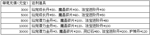 活动规则:活动期间,将仙宠提升至指定成长可获得额外奖励。