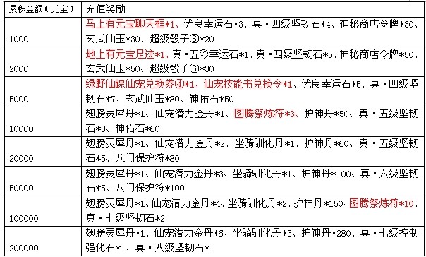 活动规则:活动期间,累积充值达到指定额度,还可以获得以下超值丰厚的奖励哦!