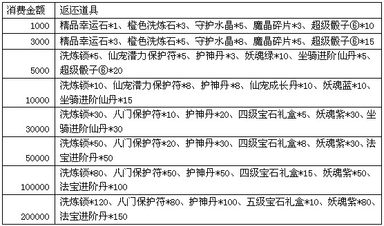 活动规则:活动期间,玩家在除市场外其他全部系统累积消费至指定额度,可获得额外的奖励。
