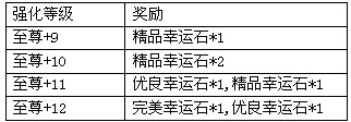 活动规则:活动期间,任意装备至尊强化成功至指定级别,都可获得额外奖励。