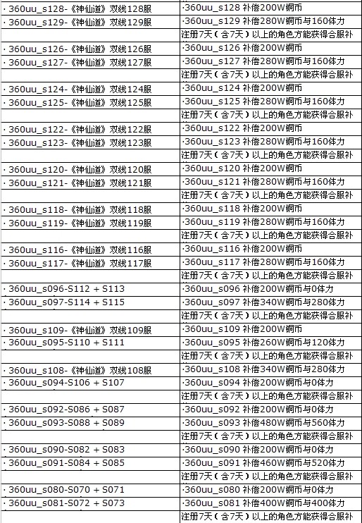 4、根据服务器开启时间的先后发放应的合服礼包;