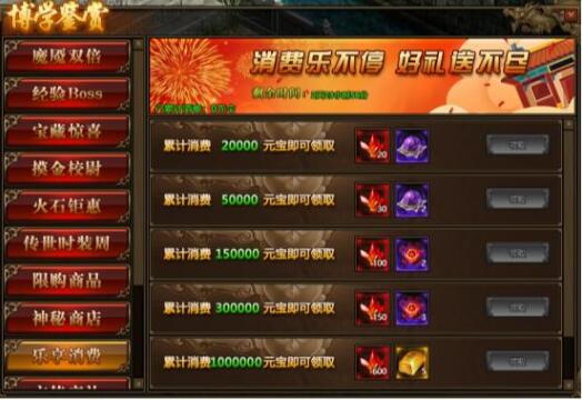 1.活动期间,玩家累计消费满足要求,可以领取境界修为、本职业星石、传世灵戒等相应奖励;