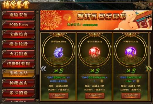 3.不同礼包,买买买,请查看游戏内更多新礼包内容!