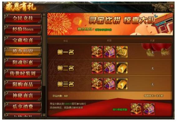 1.活动期间,玩家寻宝次数达到1000次即可参与到摸金校尉排行榜中